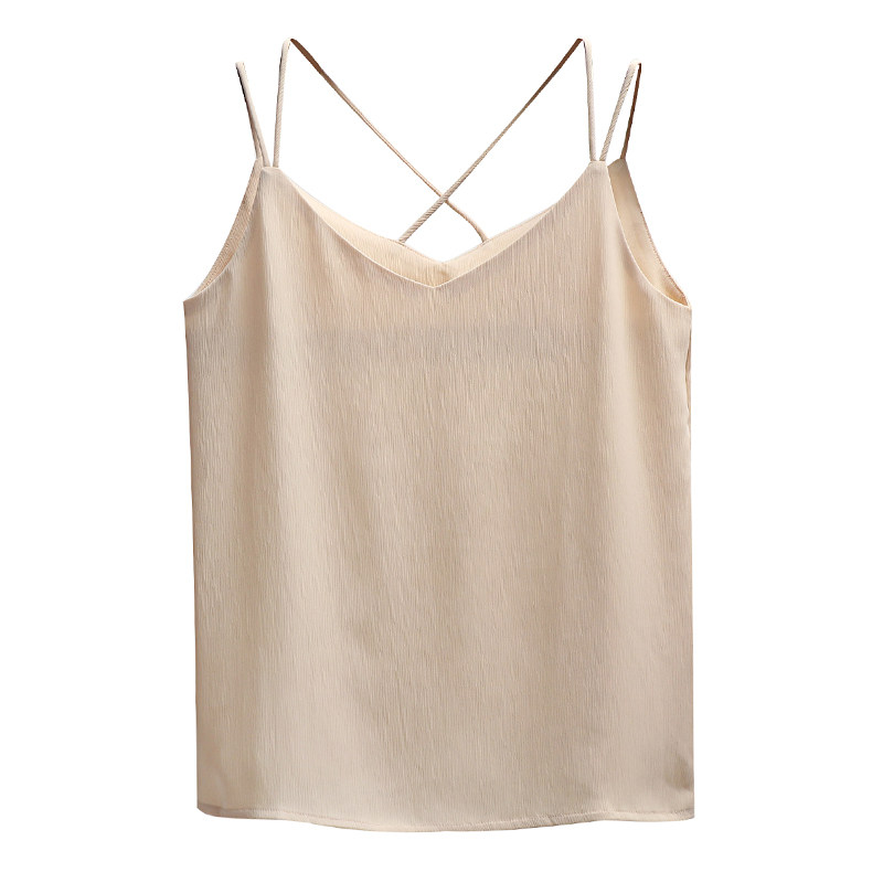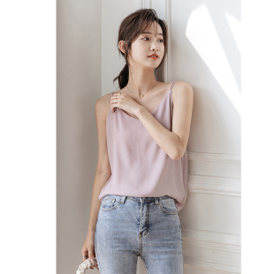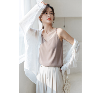 雪纺吊带背心女夏垂感宽松外穿内搭v领美背黑白色百搭打底衫 上衣