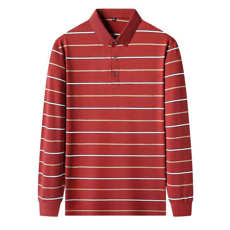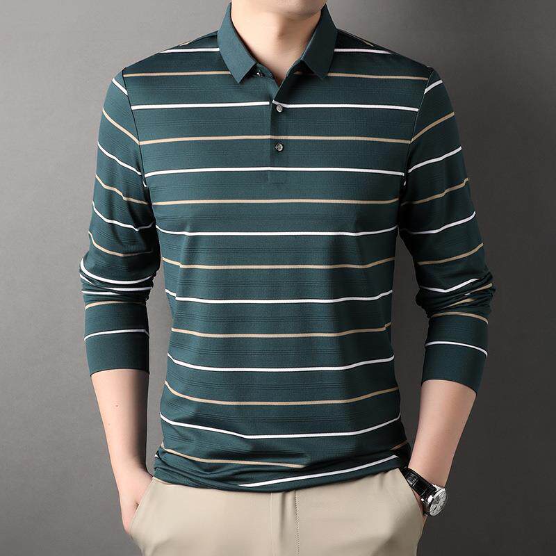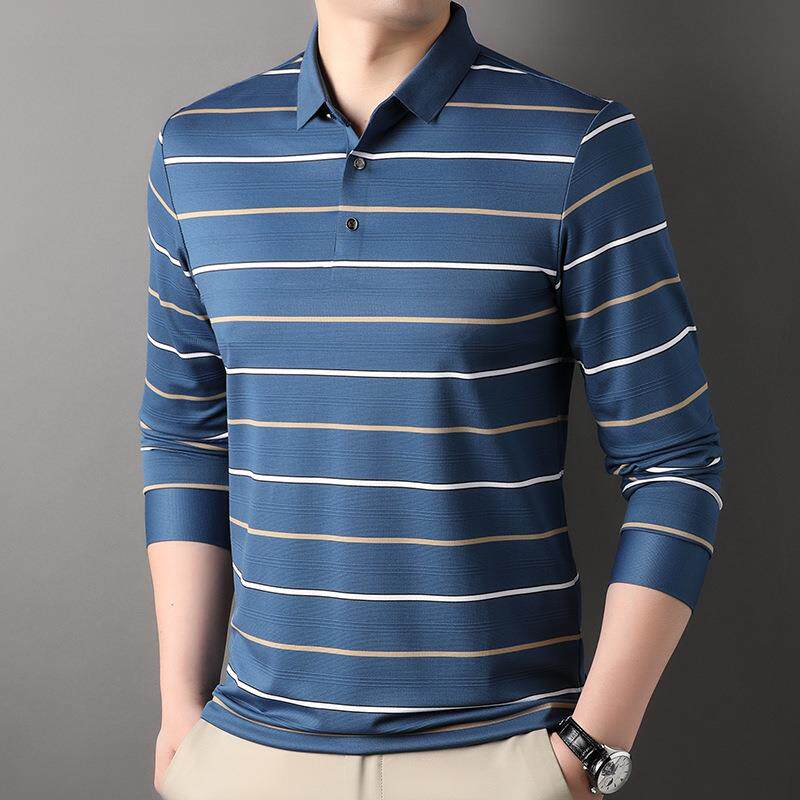 专柜桑蚕丝男士 上商务尚休闲烫体恤男 恤春免秋YTD衣时条纹男式