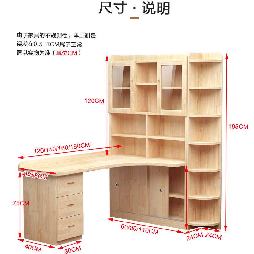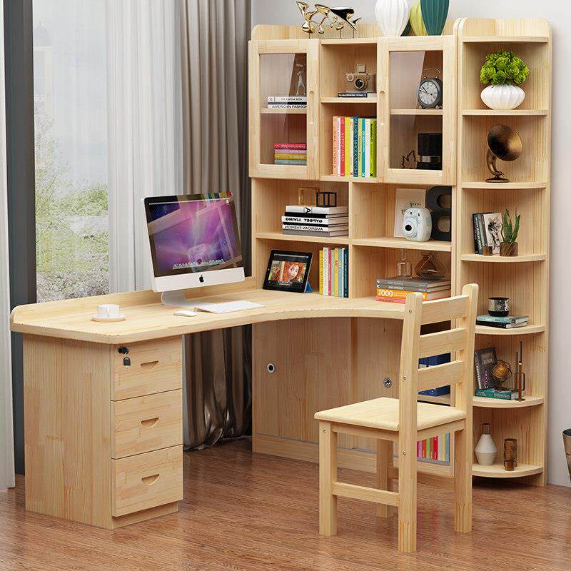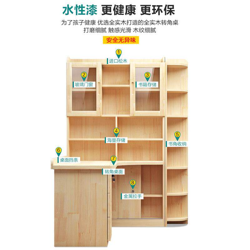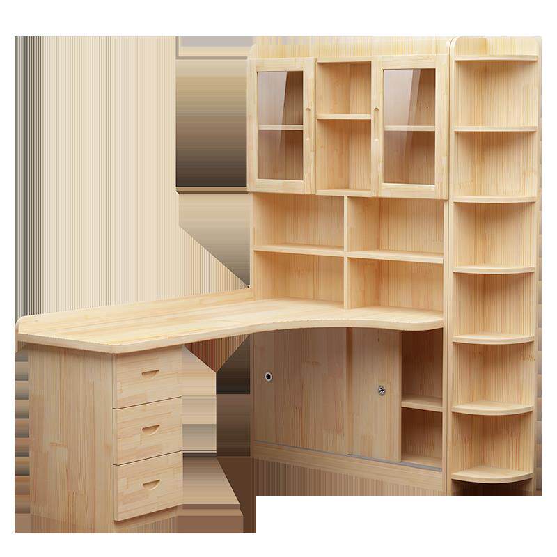 实木转角书桌书架一体组合卧室儿童学习书桌简约台式 办公电脑桌