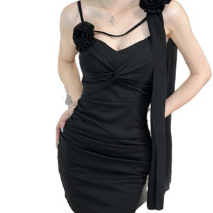 实拍现货气质性感花朵拼接吊带礼服连衣裙纯欲性感修身 包臀