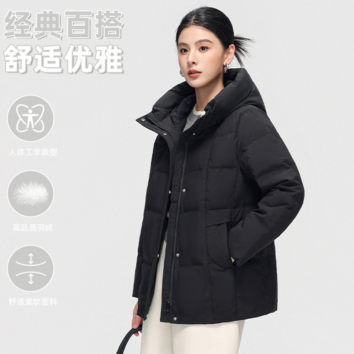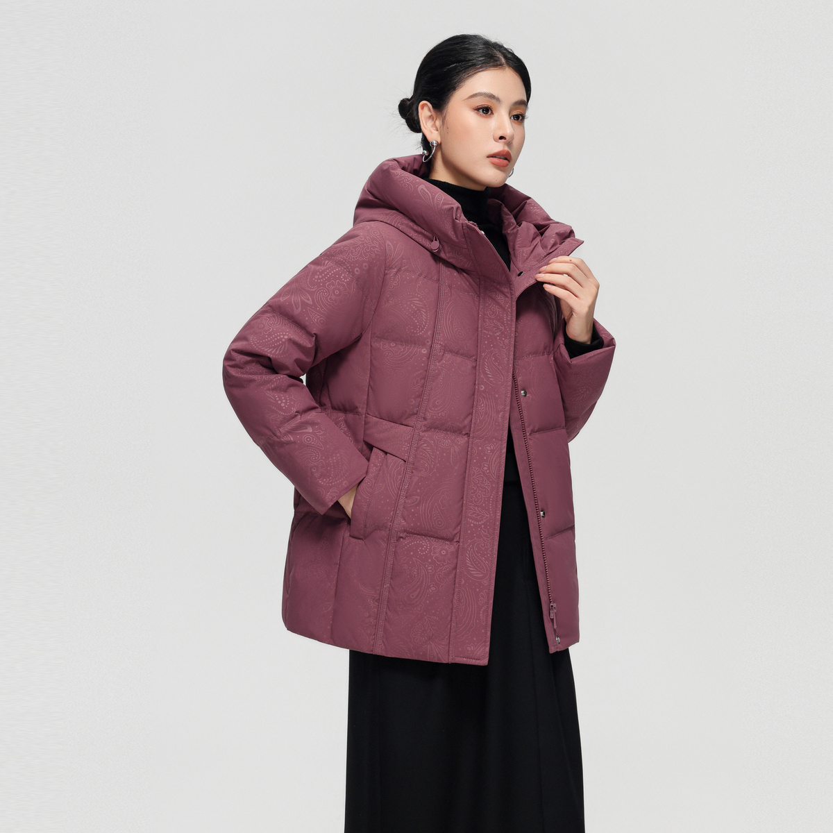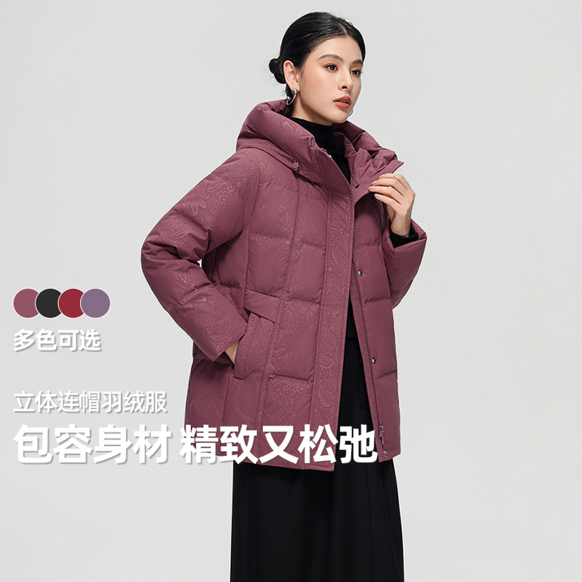 连帽保暖中老年 优雅气质妈妈装 雪中飞2025冬新款 暗花羽绒服女款