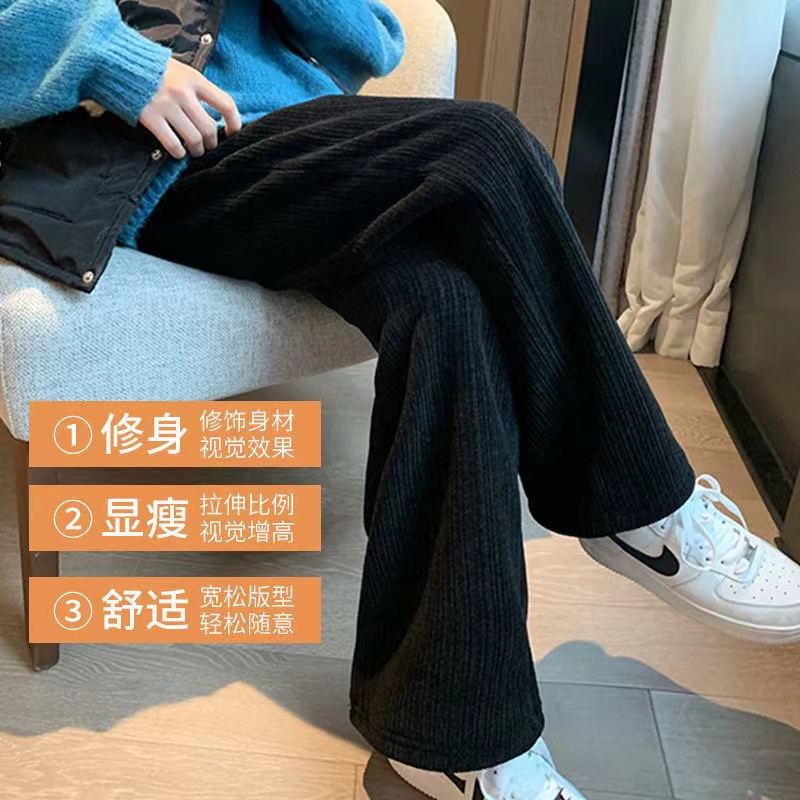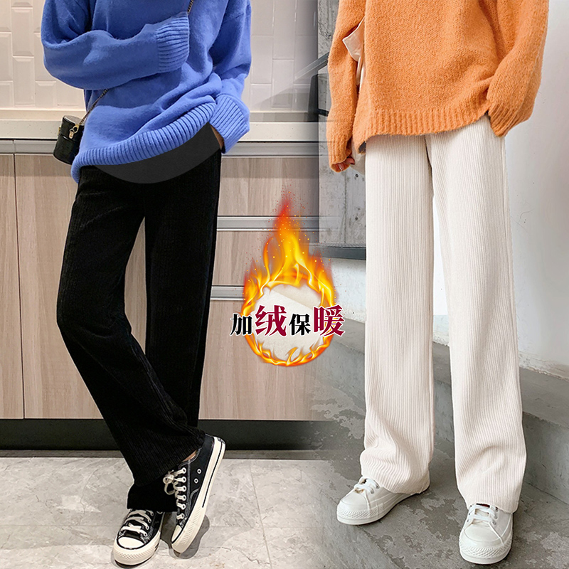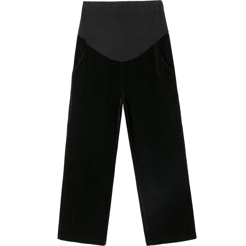 子冬装 加绒加厚长打底裤 托腹灯芯绒黑色 春秋冬外穿宽松大码 孕妇裤