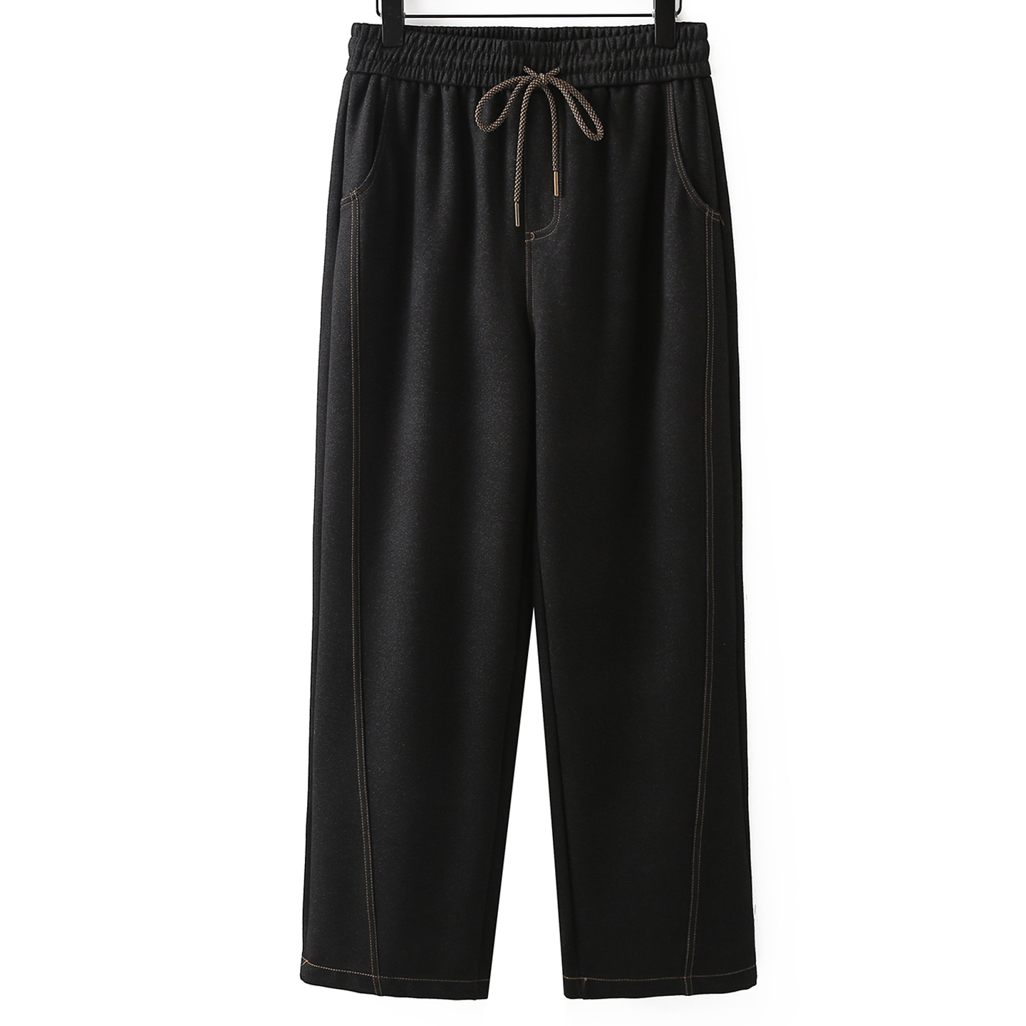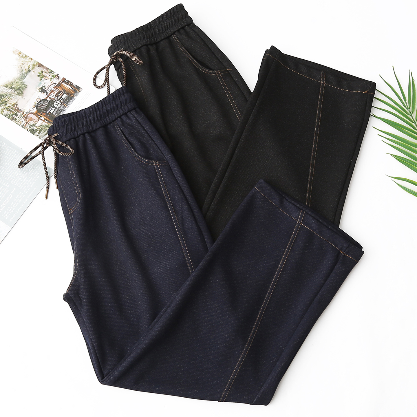 妈妈装 明线设计女裤 高腰松紧腰系带牛仔裤 新款 2025秋装 加肥加大码