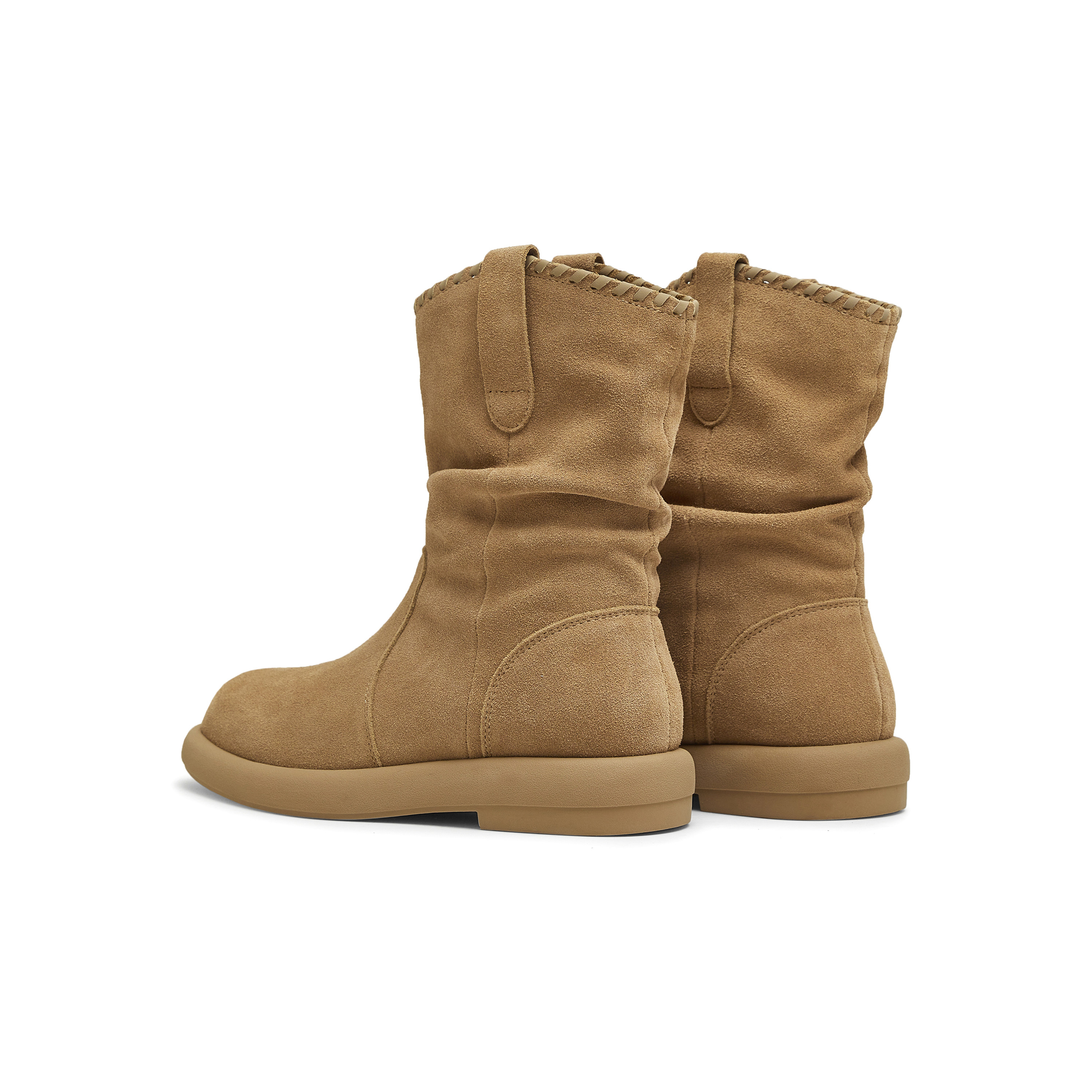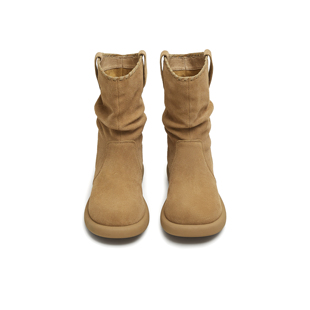 牛皮版 美拉德勃肯西部牛仔靴 骄屿棕色短靴女褶皱堆堆靴2025新款