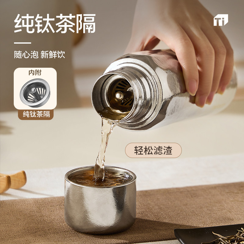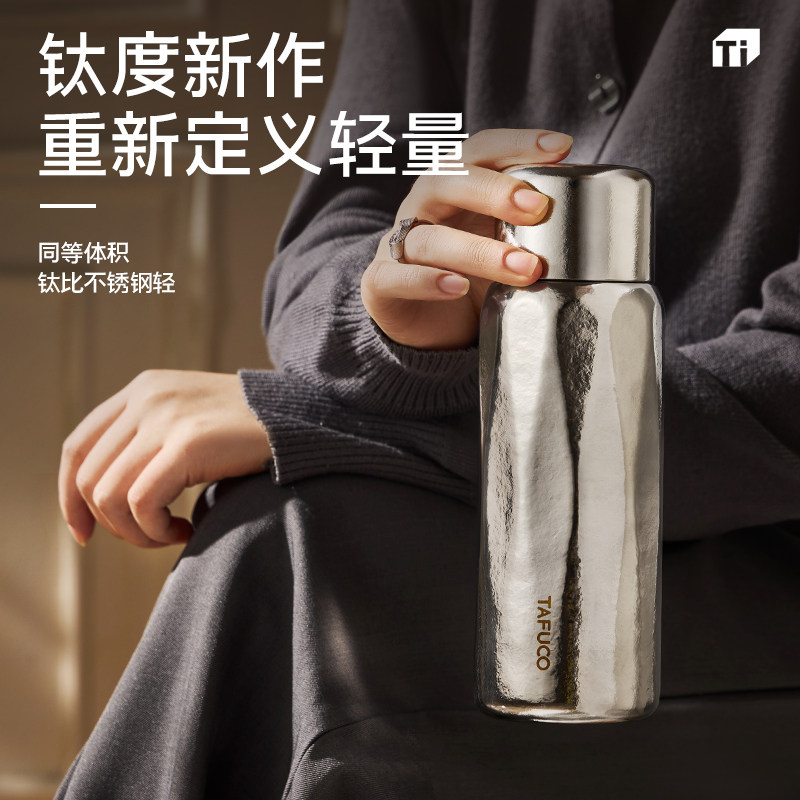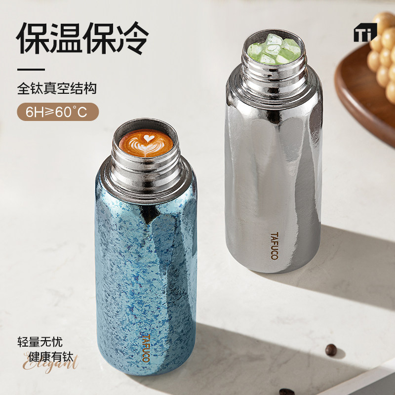 日本泰福高纯钛保温杯闷茶杯全钛双层户外便携式 水壶泡茶杯钛杯