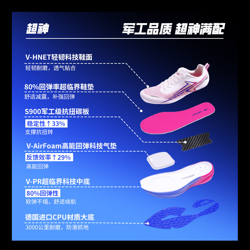 威量超神气垫跑鞋 男女 田径中考体测碳板抗扭运动鞋