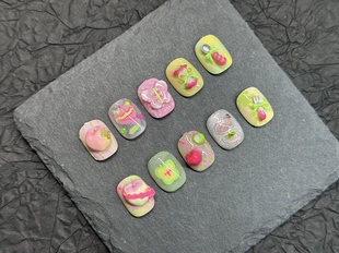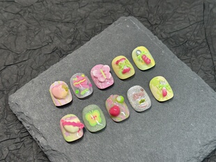 苹果开会2.0纯手工原创设计穿戴甲短款 可爱卡通软妹美甲贴片甲片