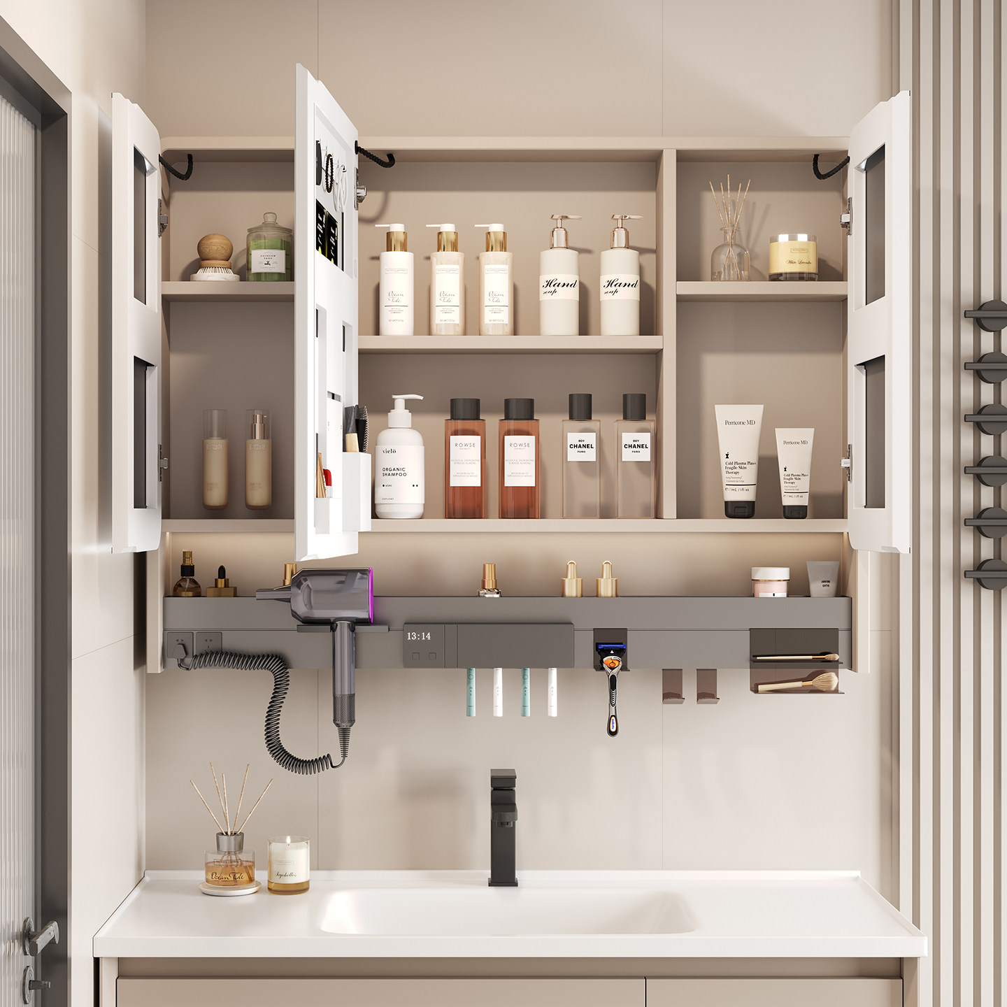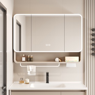 圆角太空铝智能浴室镜柜储物柜卫生间挂墙式 带美妆收纳架梳妆镜箱