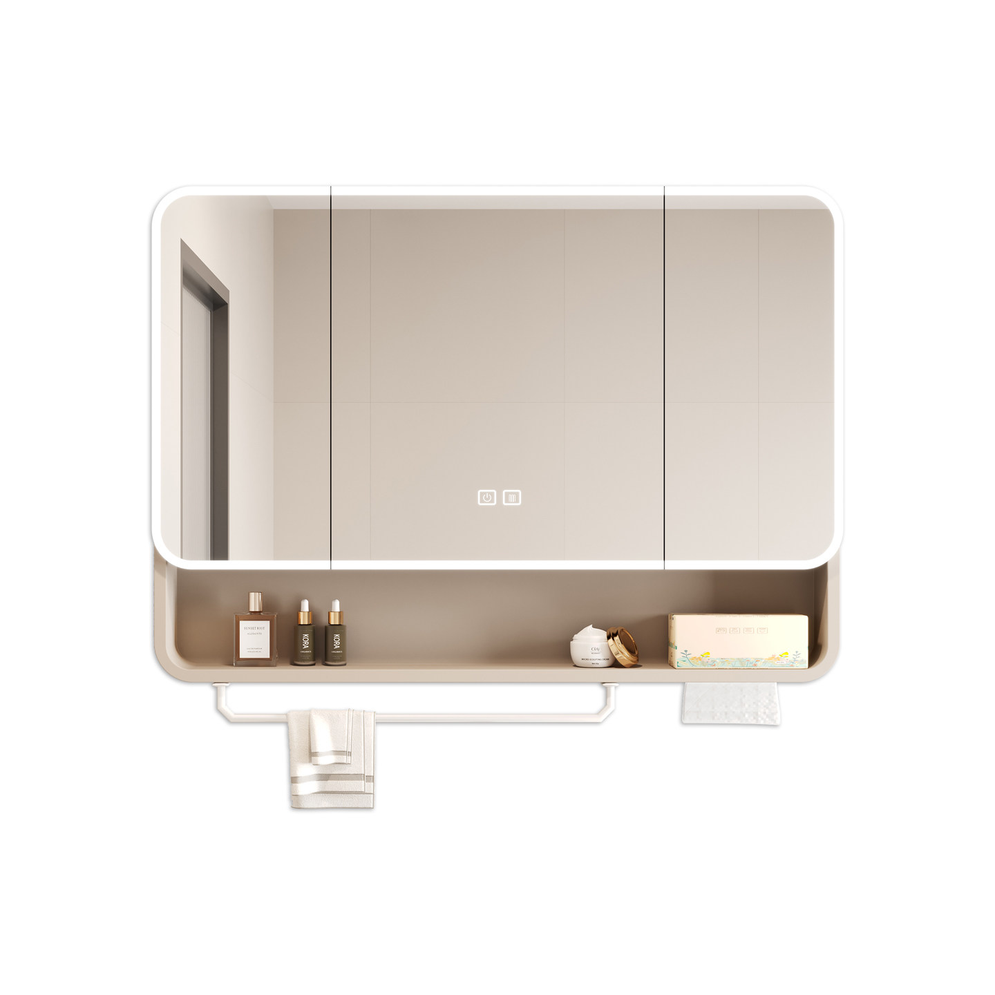 奶油太空铝圆弧浴室镜柜挂墙式 卫生间智能带灯带美妆收纳架储物柜