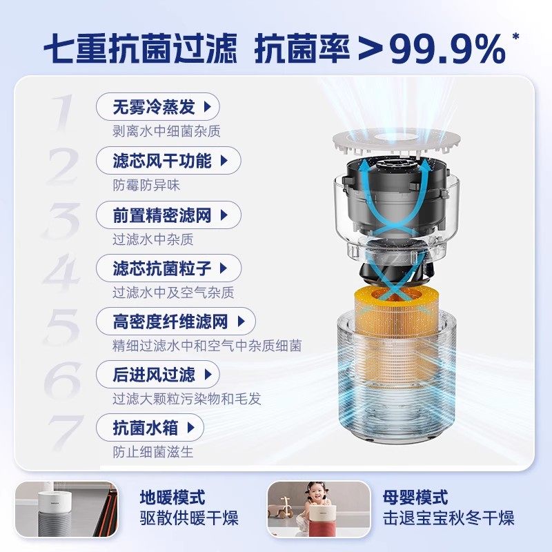 美 小型加湿器家用静轻音客厅卧室孕妇婴儿大容量桌面空气喷雾器