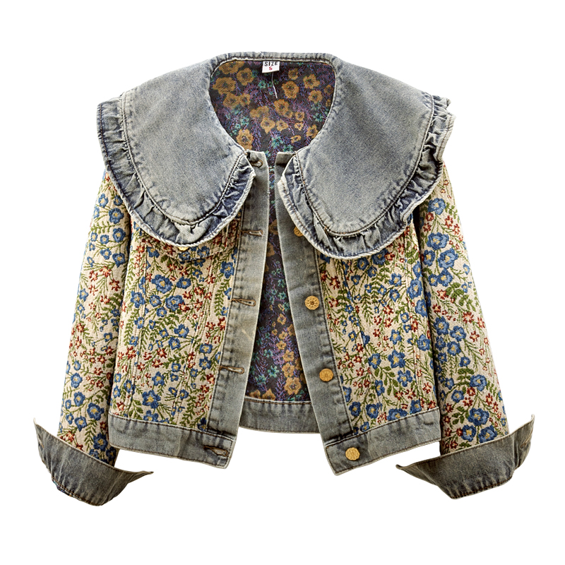 提花百搭长袖 2025秋季 开衫 荷叶边娃娃领牛仔外套女短款 上衣潮 新款