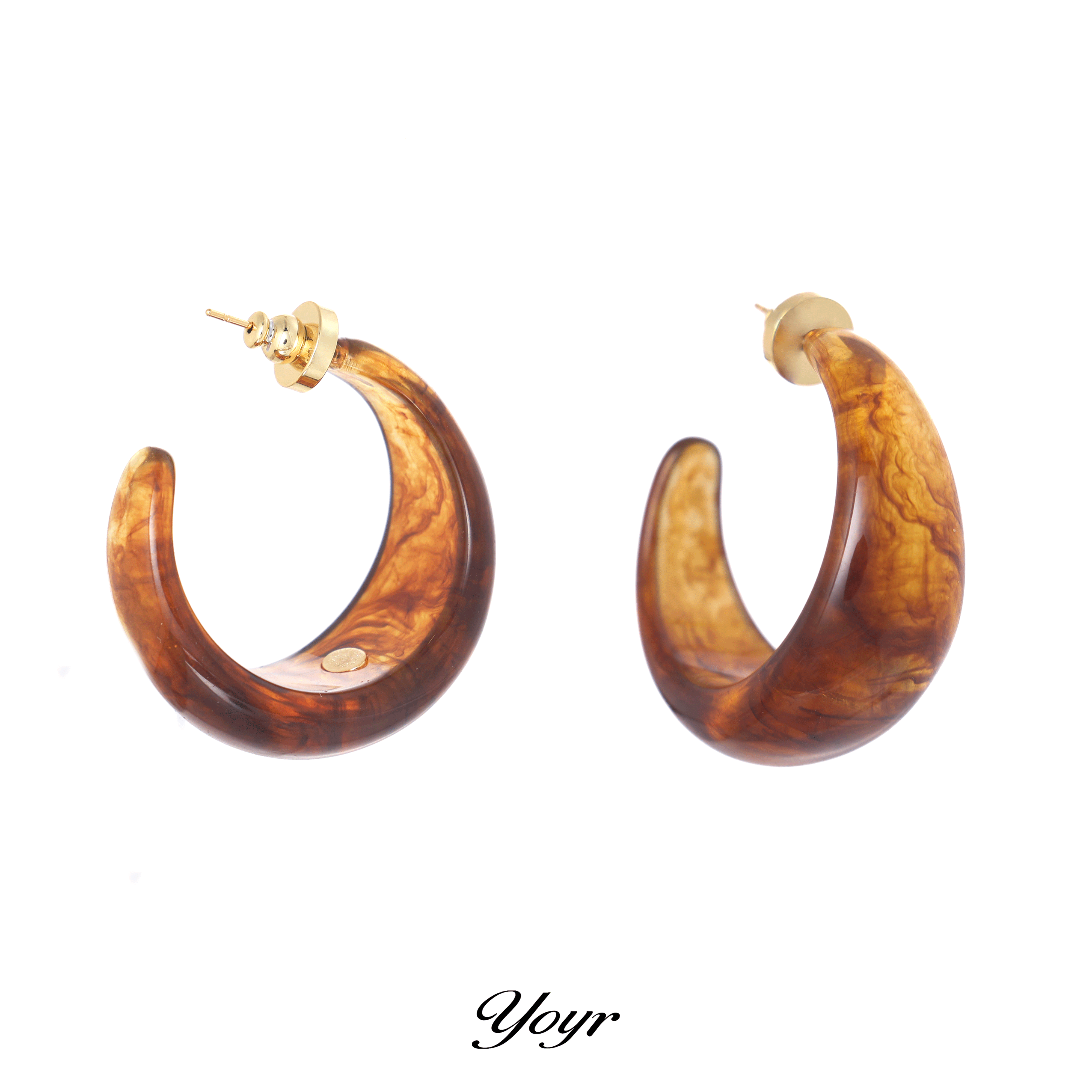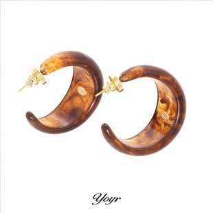 YOYR树脂耳圈 高级感轻奢欧美风复古气质小众耳环 鎏沙弦月C圈爆款