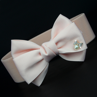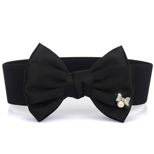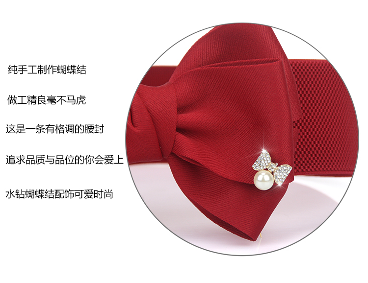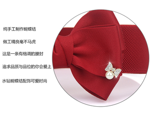 韩版 饰腰带 蝴蝶结简约百搭皮带女士连衣裙子宽腰封弹力松紧水钻装