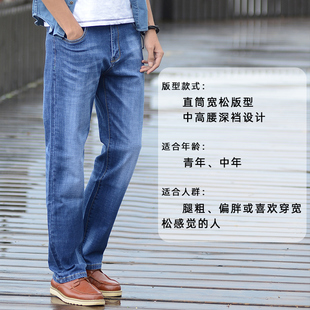 秋冬款 男休闲高腰深裆大码 亲肤舒适弹力宽松直筒牛仔裤 大大牛
