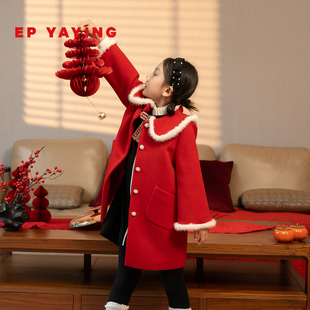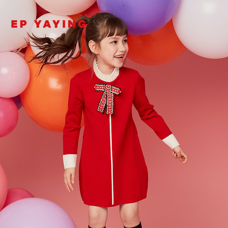 秋冬新款 EP雅莹童装 补单 小香风洋气羊毛红色连衣裙公主裙 爆款