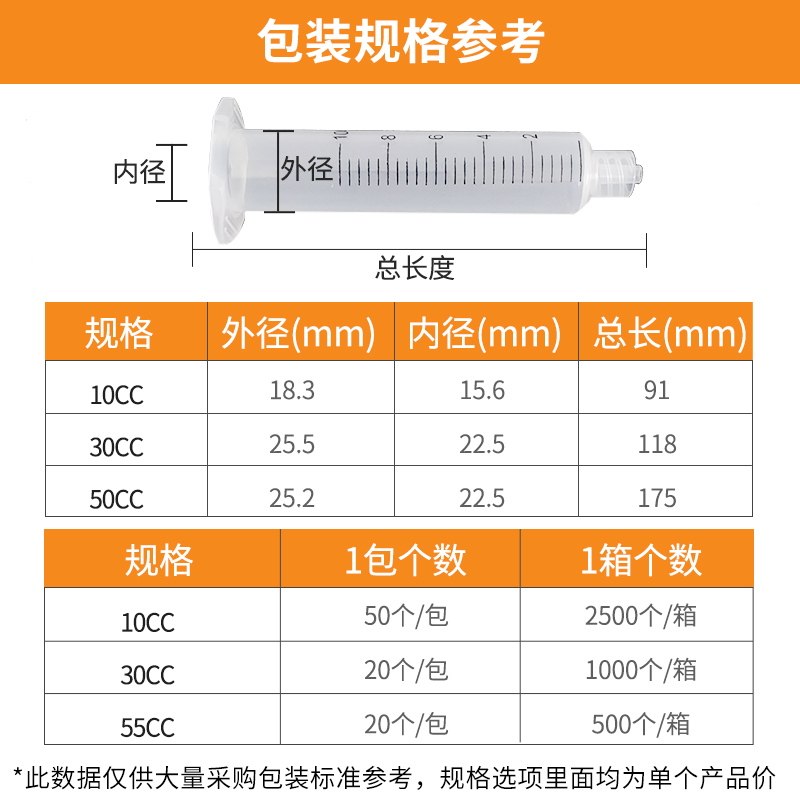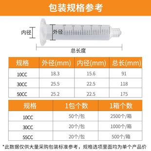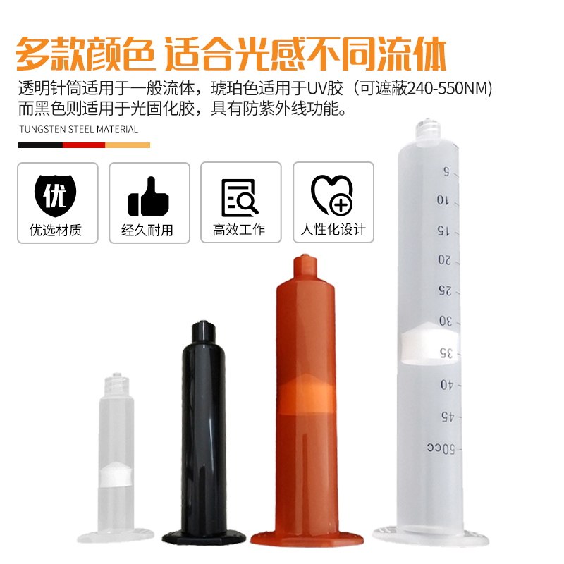 美式 30CC 透明色针筒 点胶机针筒10CC 55CC 带刻度针管 点胶针筒
