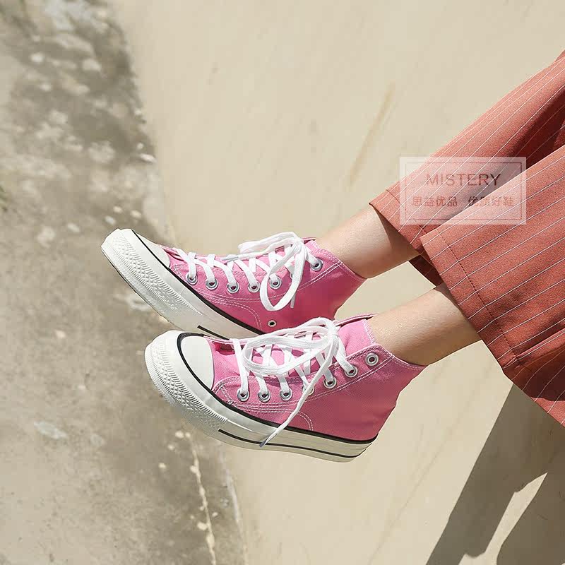 学生原宿ulzzang街拍鞋 粉色高帮帆布鞋 运动鞋 春新款 女 女复古布鞋