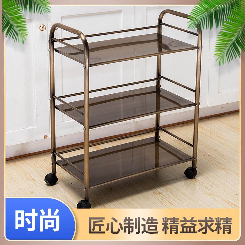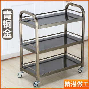 不锈钢三层火锅菜架车酒店餐桌三层手推车酒水碗筷焖锅置物架餐车