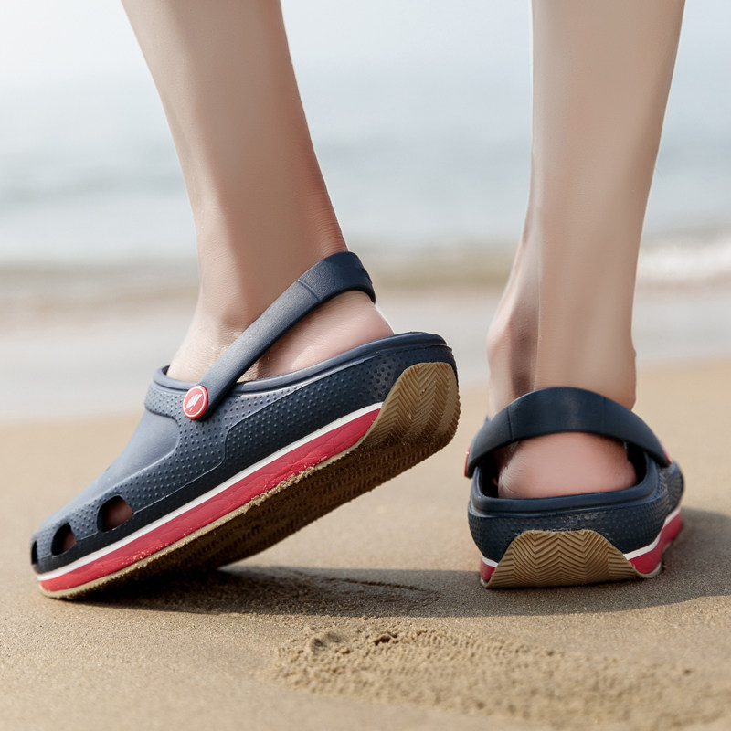 耐磨防滑软底海边沙滩鞋 夏外穿室内包头凉鞋 潮 男拖鞋 牛筋底洞洞鞋
