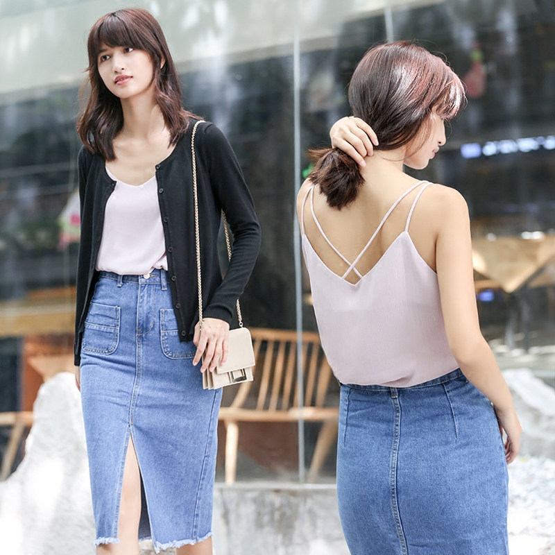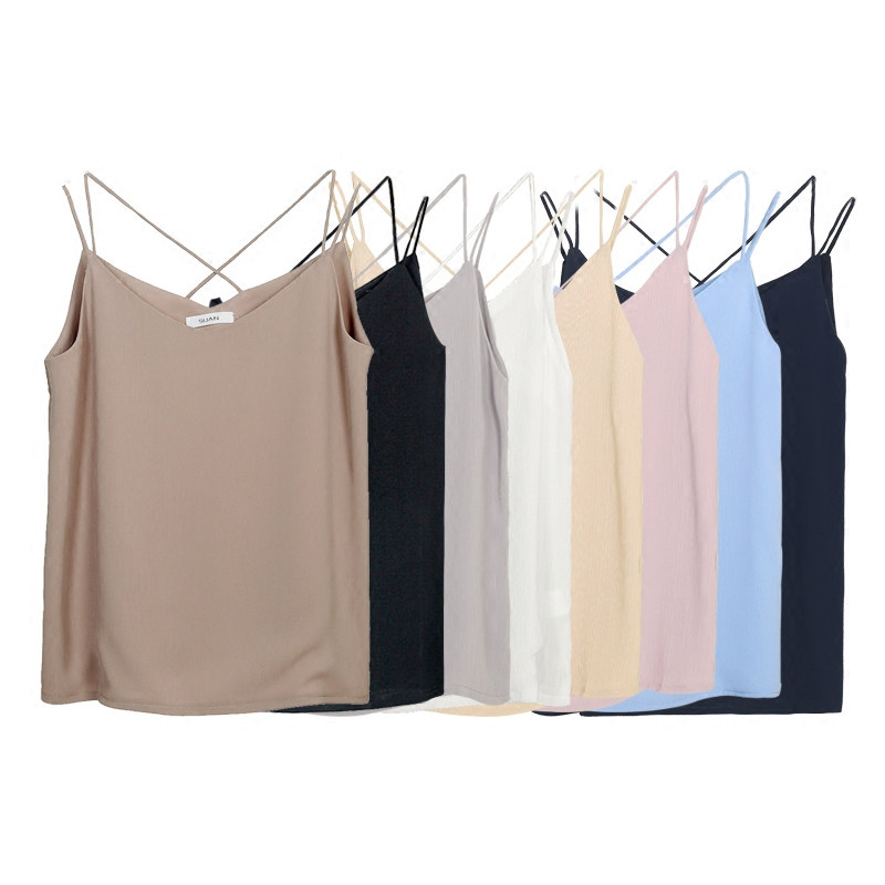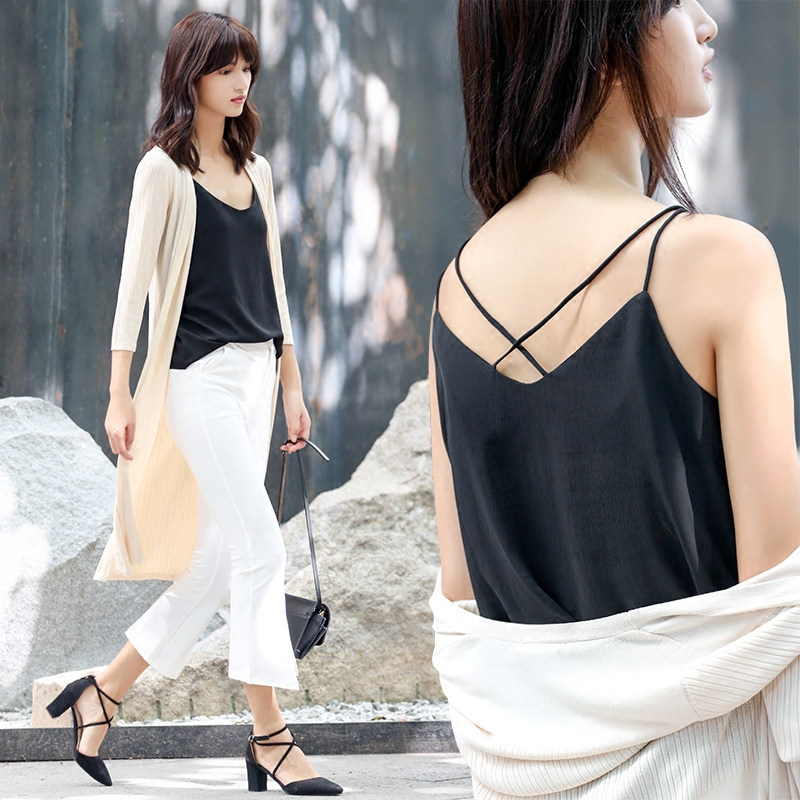 贰小小姐自制 吊带女夏 可拆卸胸垫双层遮副乳显瘦背心上衣基础款