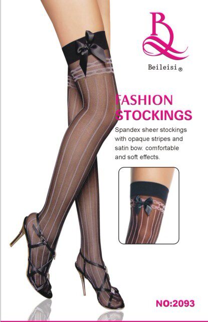 大腿高统袜 拼6双 双色条纹透肉蝴蝶结 超显瘦 长筒袜2093 包邮