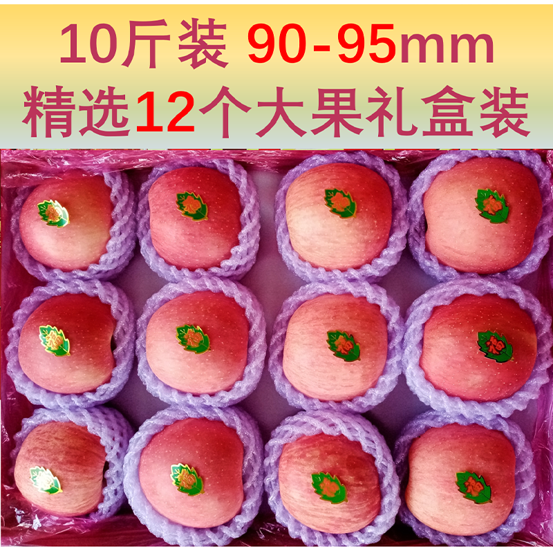 包邮 精美水果礼盒陕西洛川苹果新鲜水果12枚90mm苹果礼盒装 整箱