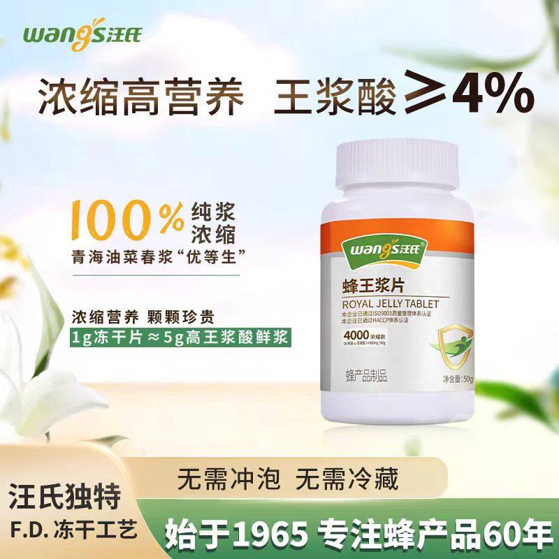 汪氏蜂王浆片4.0 冻干粉片50粒含片新鲜蜂皇浆胶囊旗舰店官方正品