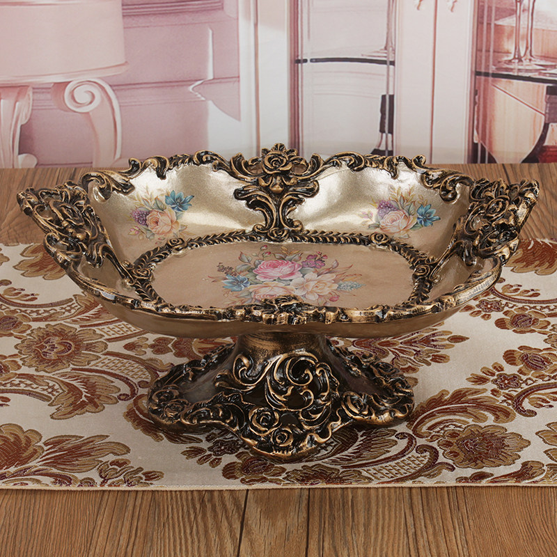 木质果盘法式 复古黑色四足鼎水果收纳盘家用客厅茶几实木果篓摆件