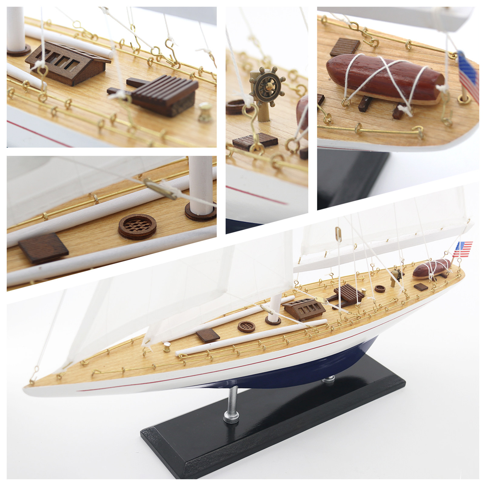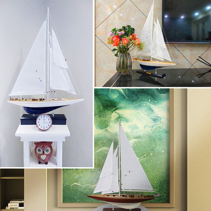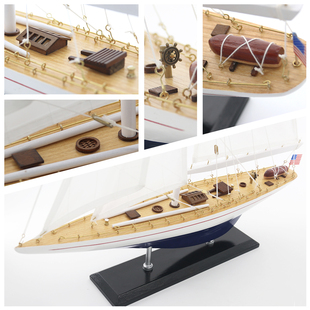 饰品一帆风顺博物馆现代摆件 玄关装 精致实木帆船模型单桅美式 欧式