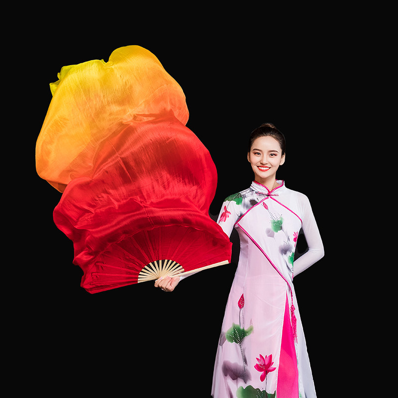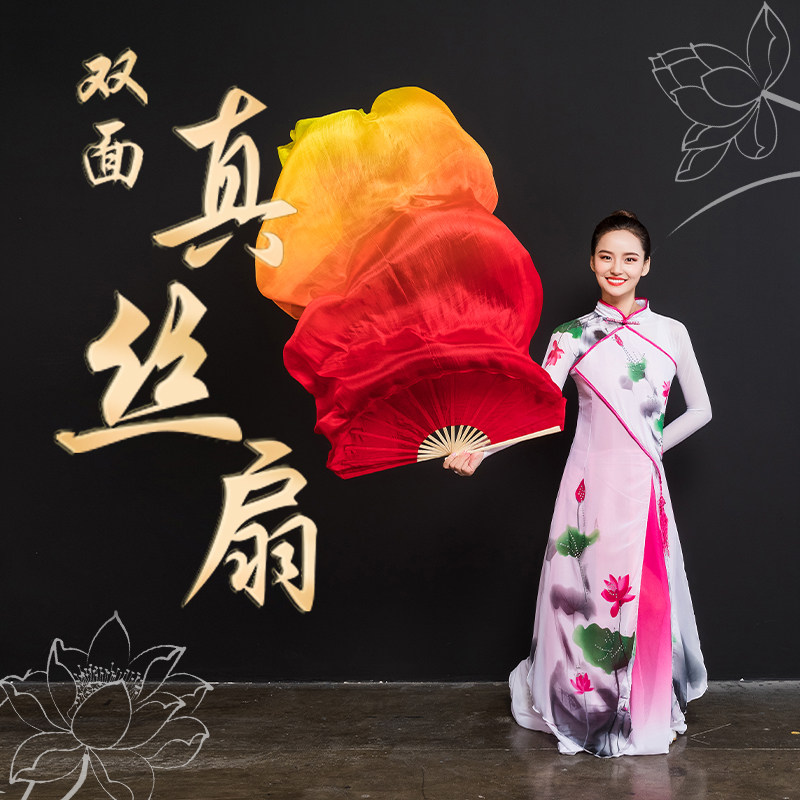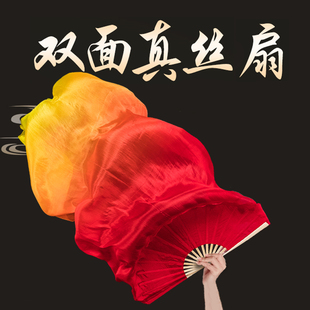 真丝舞蹈扇子广场舞渐变加长稠扇双面成人儿童红昭愿锦鲤抄跳舞扇