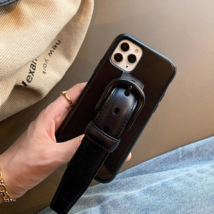经典 15全包防摔气质软壳 简约黑色牛皮腕带手机壳适用于iphone17promax保护套小众极简复古高级感苹果16