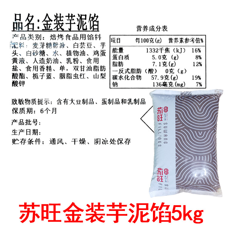 苏旺芋泥馅5kg芋头泥香芋泥盒子低甜麻薯面包蛋糕蛋黄酥烘焙原料