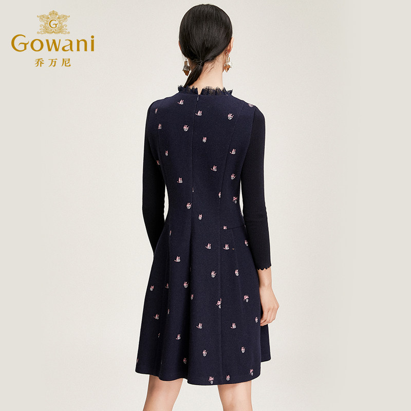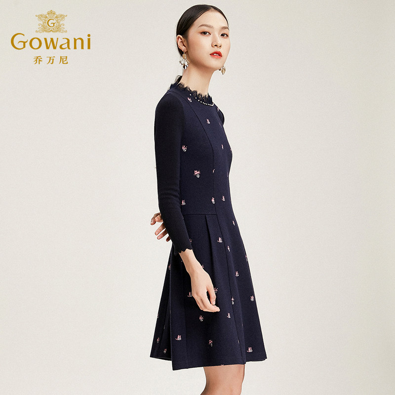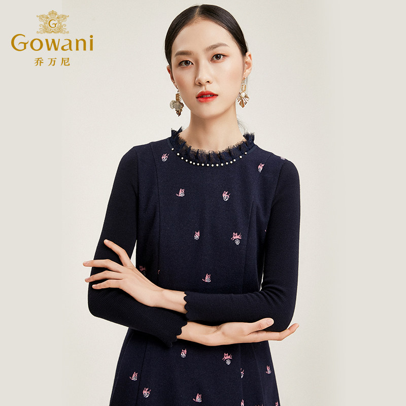 打底裙中长款 乔万尼新款 长袖 气质a字裙高腰修身 连衣裙女商场冬季