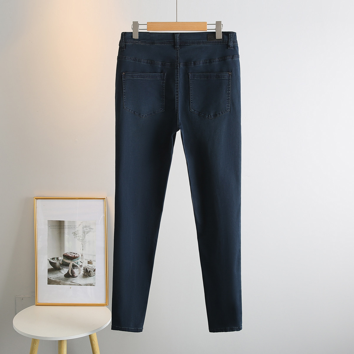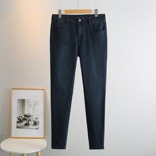 300斤胖MM简约魔术高腰小脚牛仔长裤 高弹力牛仔裤 女装 外贸特大码