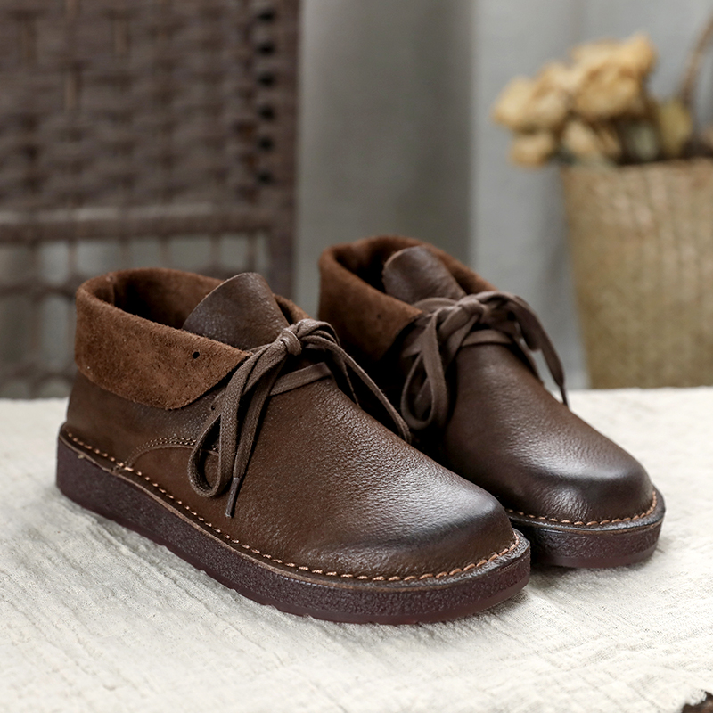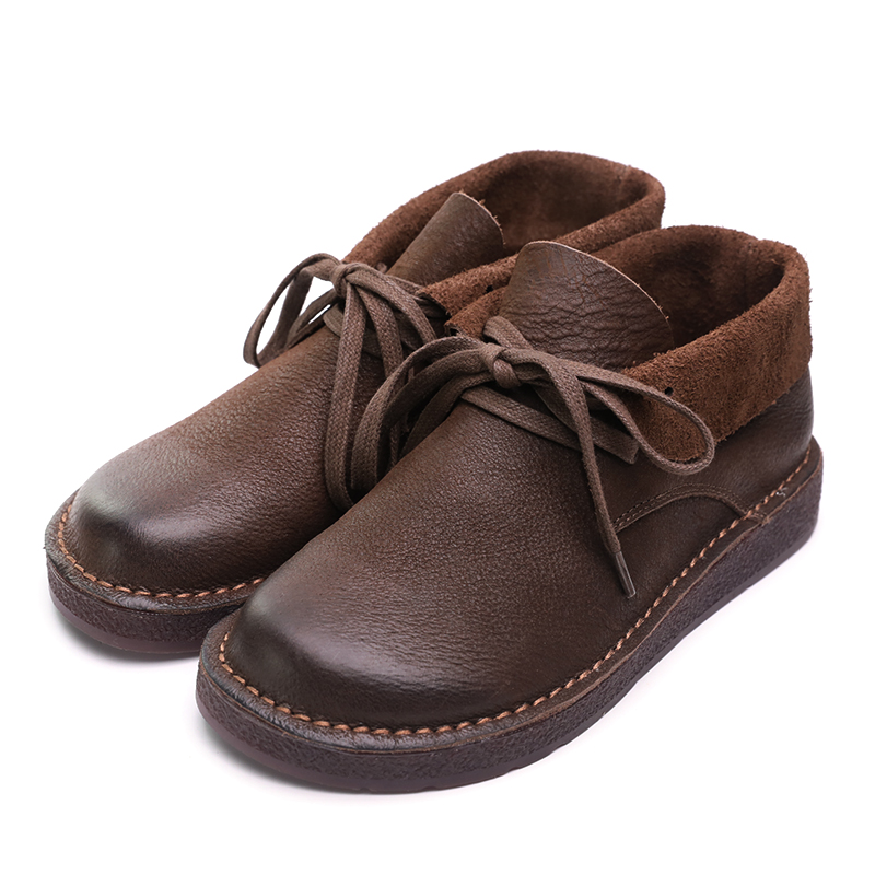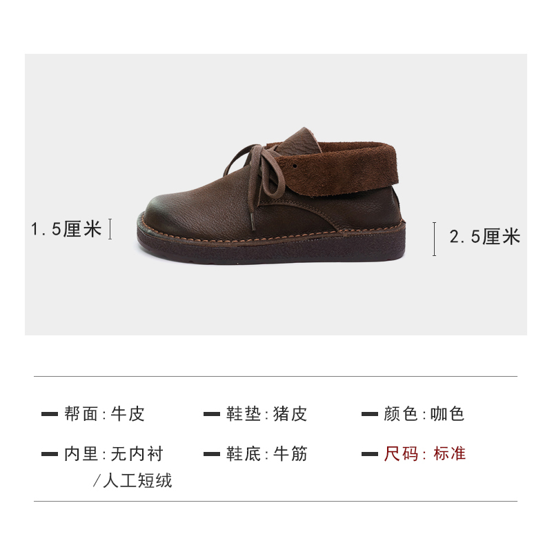 软底高帮鞋 脱毒家 单鞋 子小皮鞋 女 高低两相宜森系头层牛皮真皮鞋