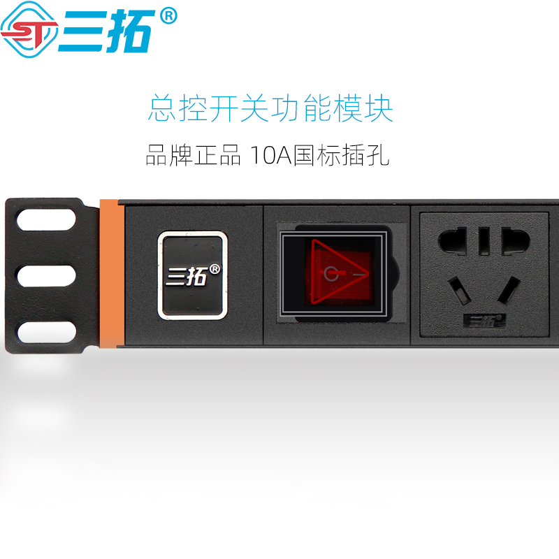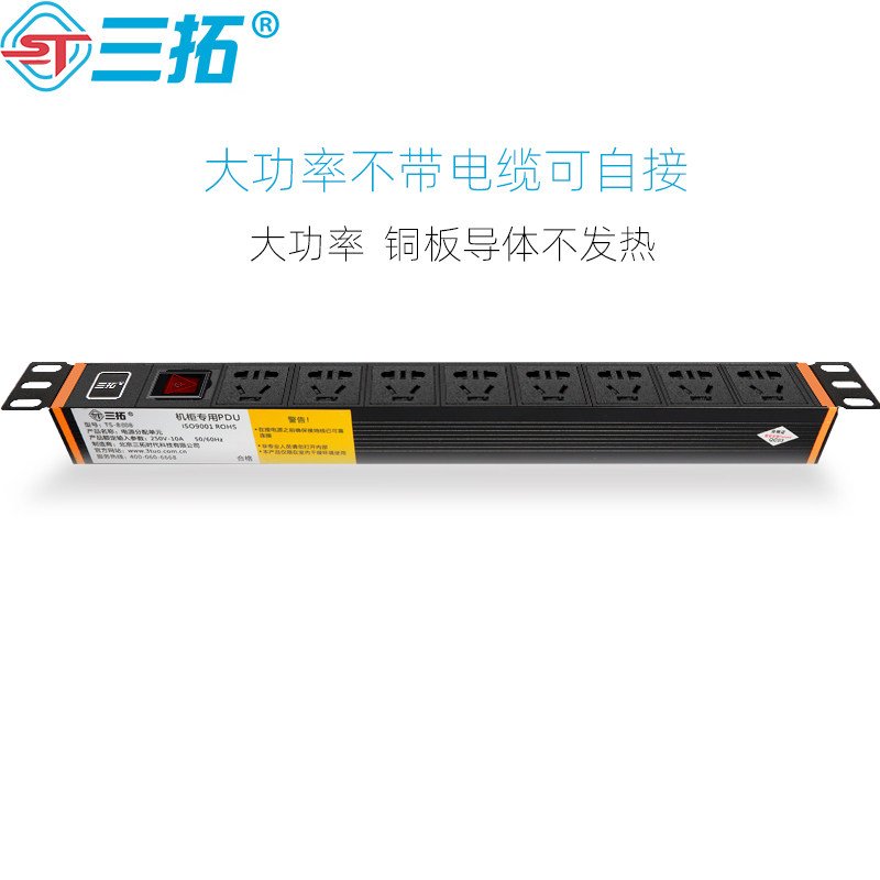 工业插排电源大功率多功能接线板机房机架式 新国标不带线 无线 TS.8009机柜PDU插座8位10A输出开关模块 三拓