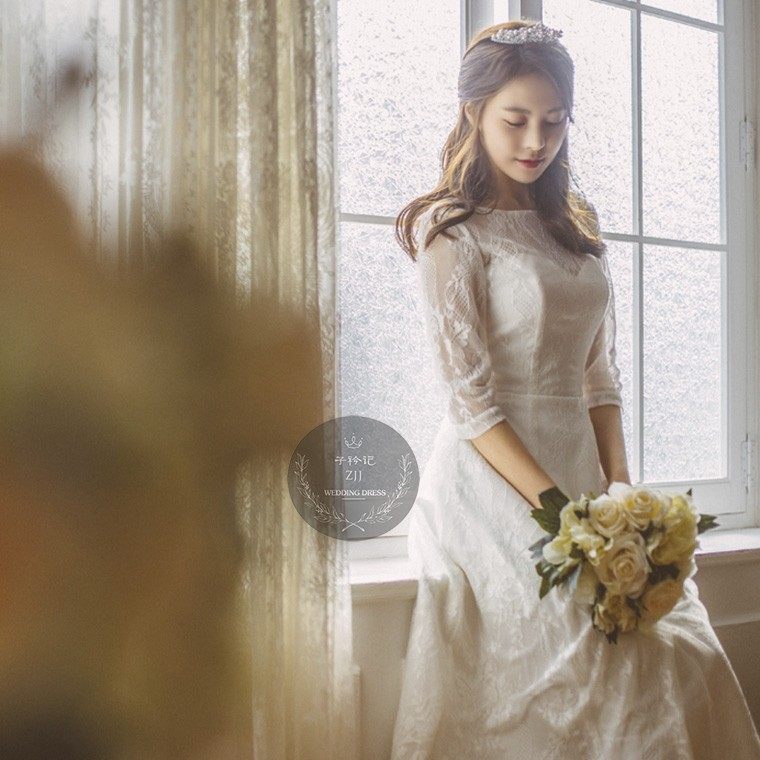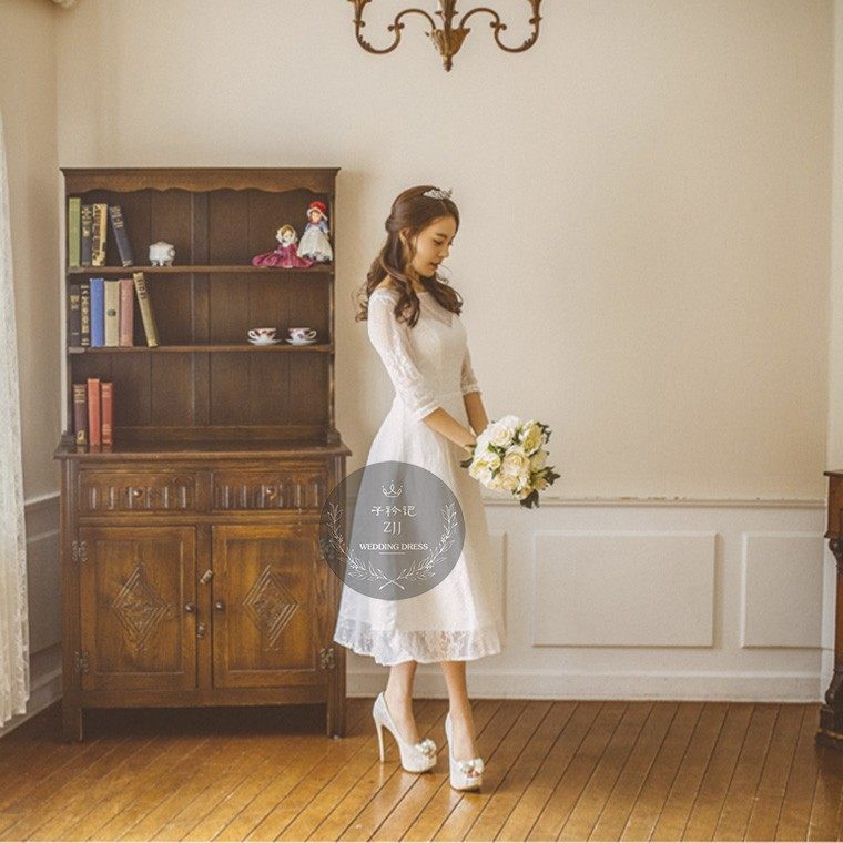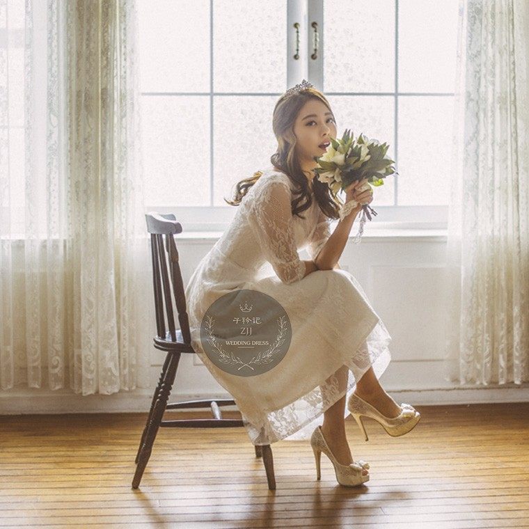 2020新款 蕾丝轻婚纱旅拍结婚小礼服裙气质超仙森系出门纱夏遮手臂