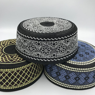 礼拜帽男士 回民帽子平顶圆边表演帽黑底白花沙特回族帽回回帽 新款