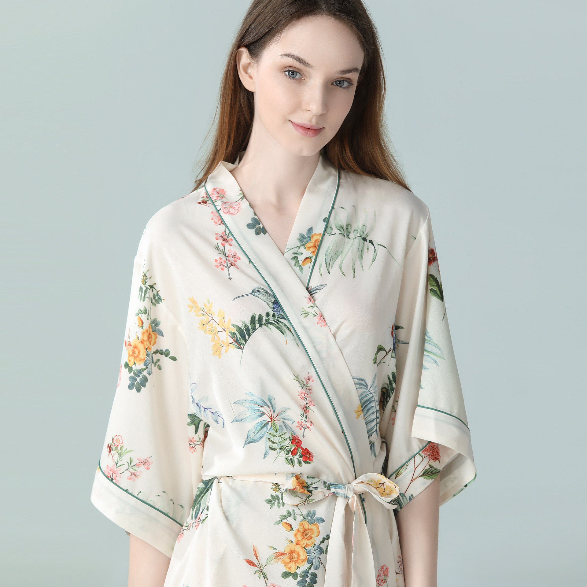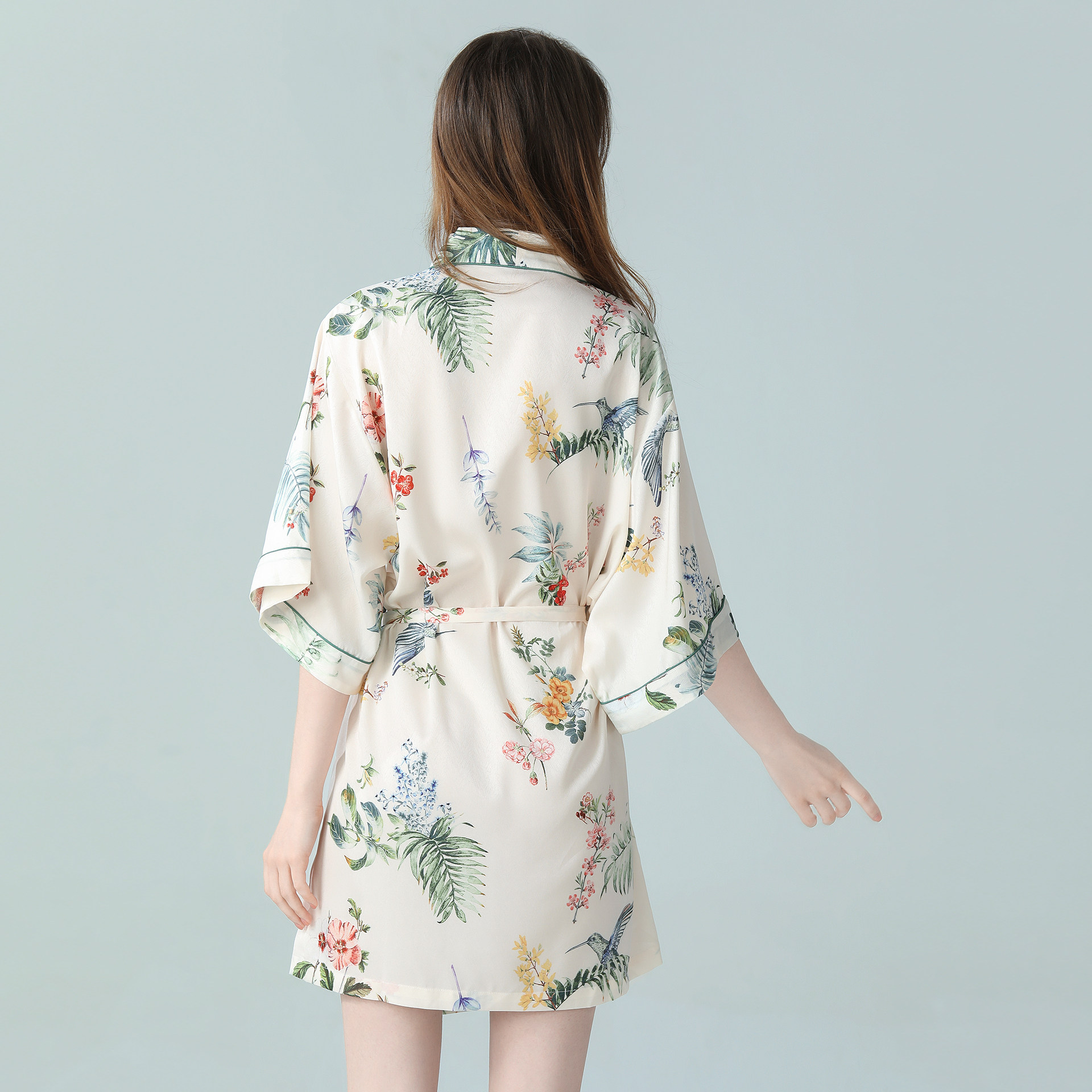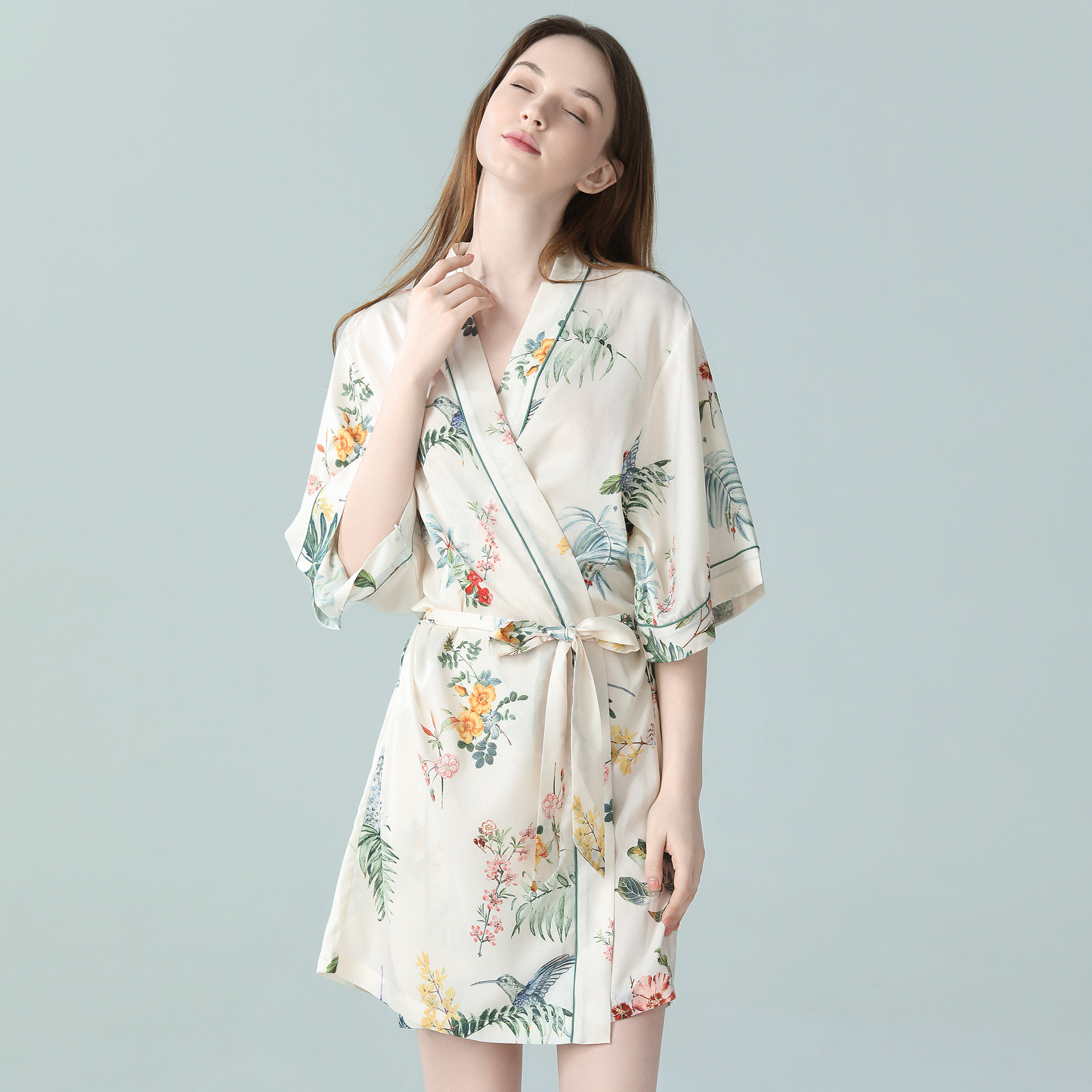 IIZZINI原创 冰丝中国风蔷薇花奢华睡衣居家晨袍浴袍 睡袍女夏薄款