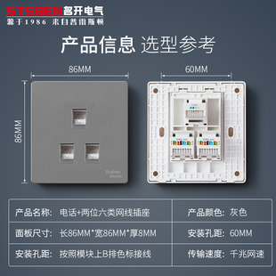 86型六类网线插座面板电话电脑网络网口宽带千兆6六类网线插面板