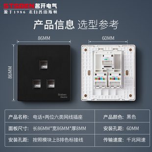 千兆六类电视电话电脑直通网络网线插座面板单双孔网口水晶头直插