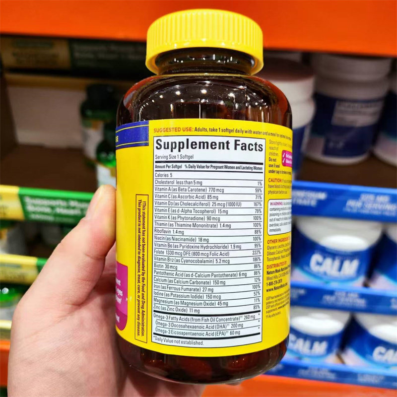 现货26.12 Made孕妇维生素矿物质DHA叶酸维他命150粒 美国Nature