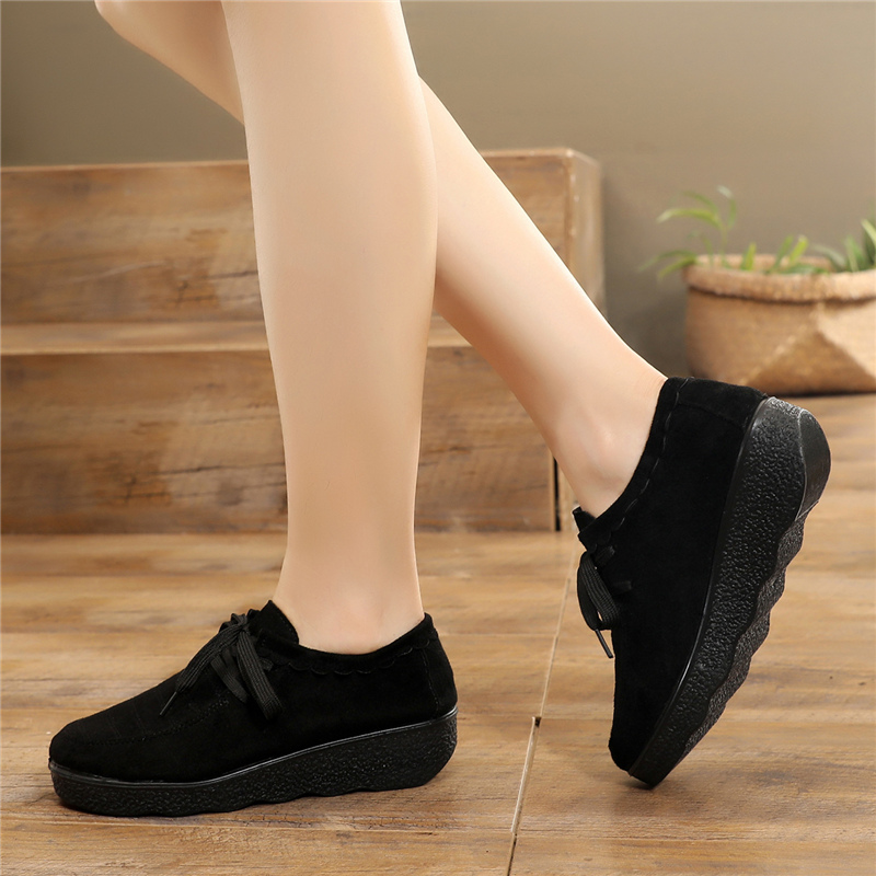 系带软底防滑休闲妈妈鞋 春秋天老北京布鞋 摇摇鞋 单鞋 松糕厚底女鞋