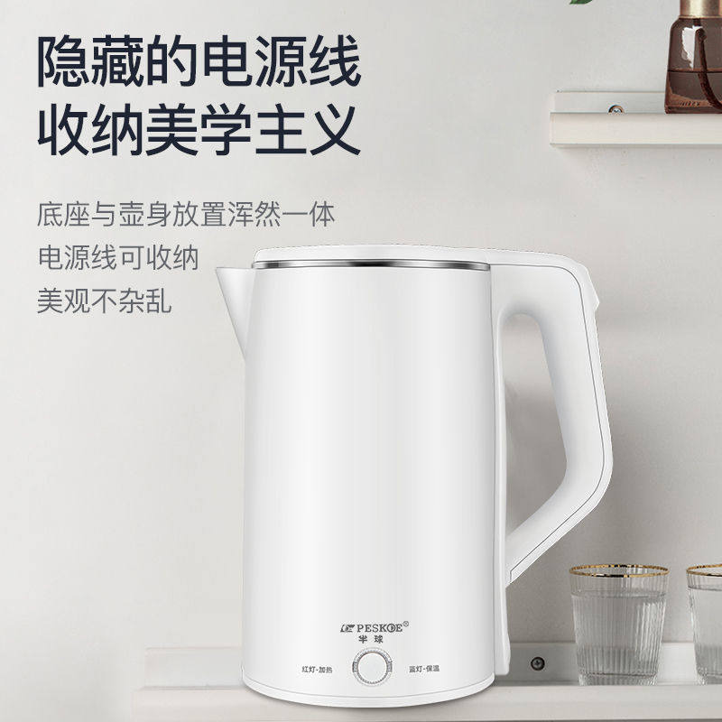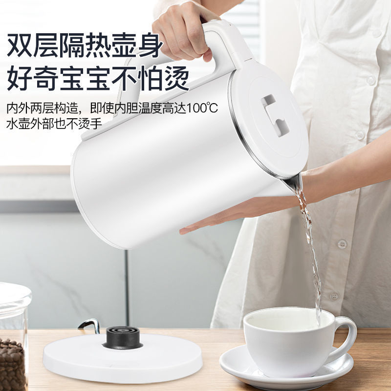 美 电热水壶家用双层防烫烧水壶泡茶煮水304不锈钢保温开水壶