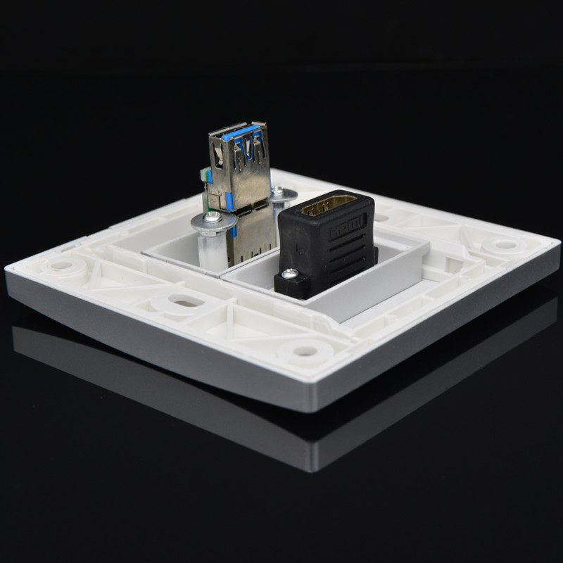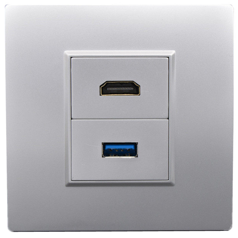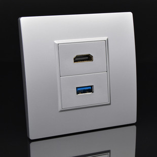 银色HDMI高清USB插座86型电脑多媒体面板直插3.0USB数据延长插口