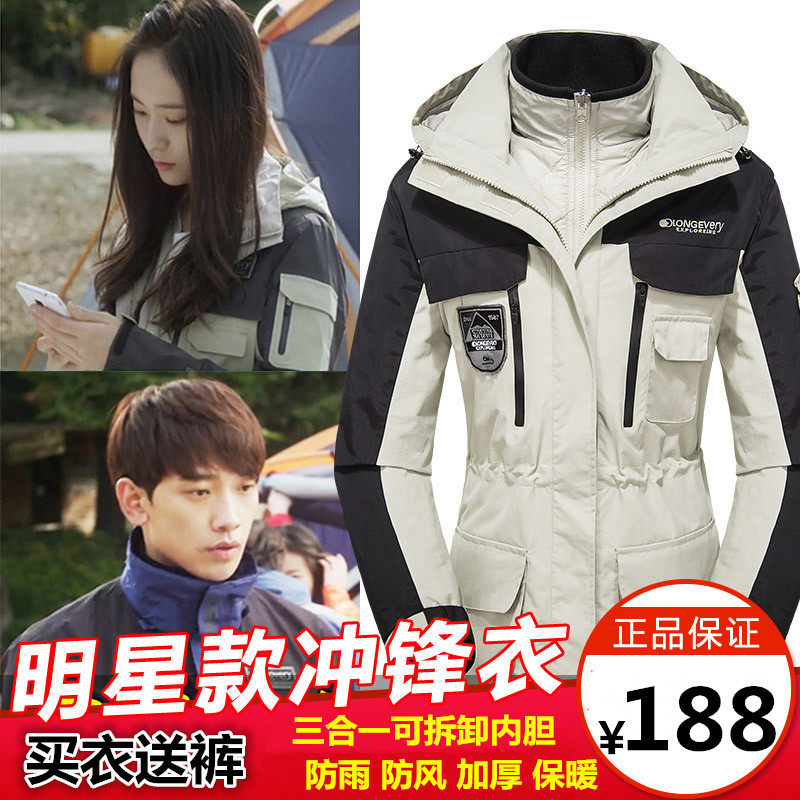 户外冲锋衣外套女2025秋冬两件套新款 保暖防风防水加厚登山服情侣