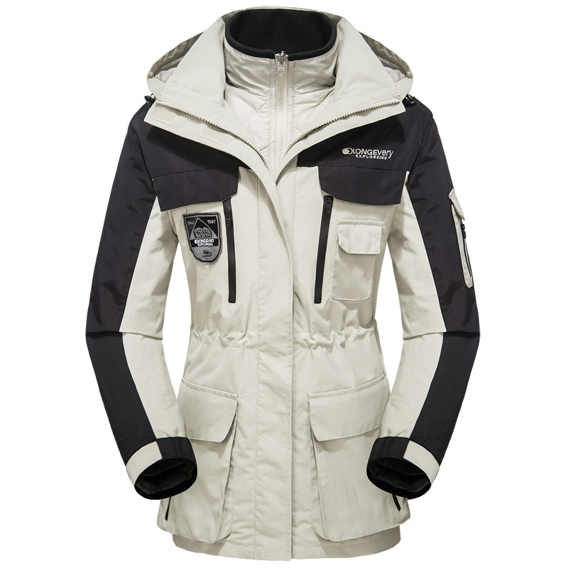 胖mm冬季 女一体无胆白鸭绒羽绒冲锋衣 都市户外羽绒服木子理想大码