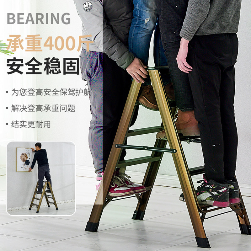 奥鹏锁扣梯子家用折叠伸缩梯子加厚楼梯人字室内多功能三步小梯凳