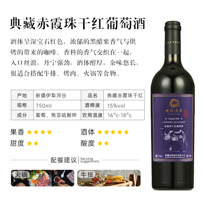 国产中国新疆红酒霓裳老滕葡萄酒赤霞珠静态干红葡萄酒整箱装