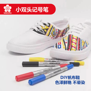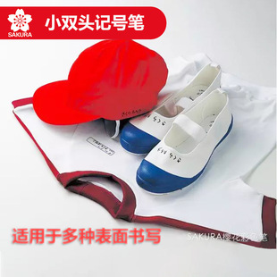 官方旗舰店 日本sakura樱花文具油性小双头记号马克笔防水CD光盘标记笔黑红蓝签名笔单头勾线笔彩色日本进口